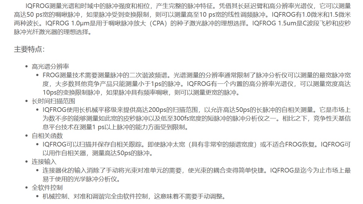 Quantifi Photonics IQFROG光脉冲分析仪 专业生产